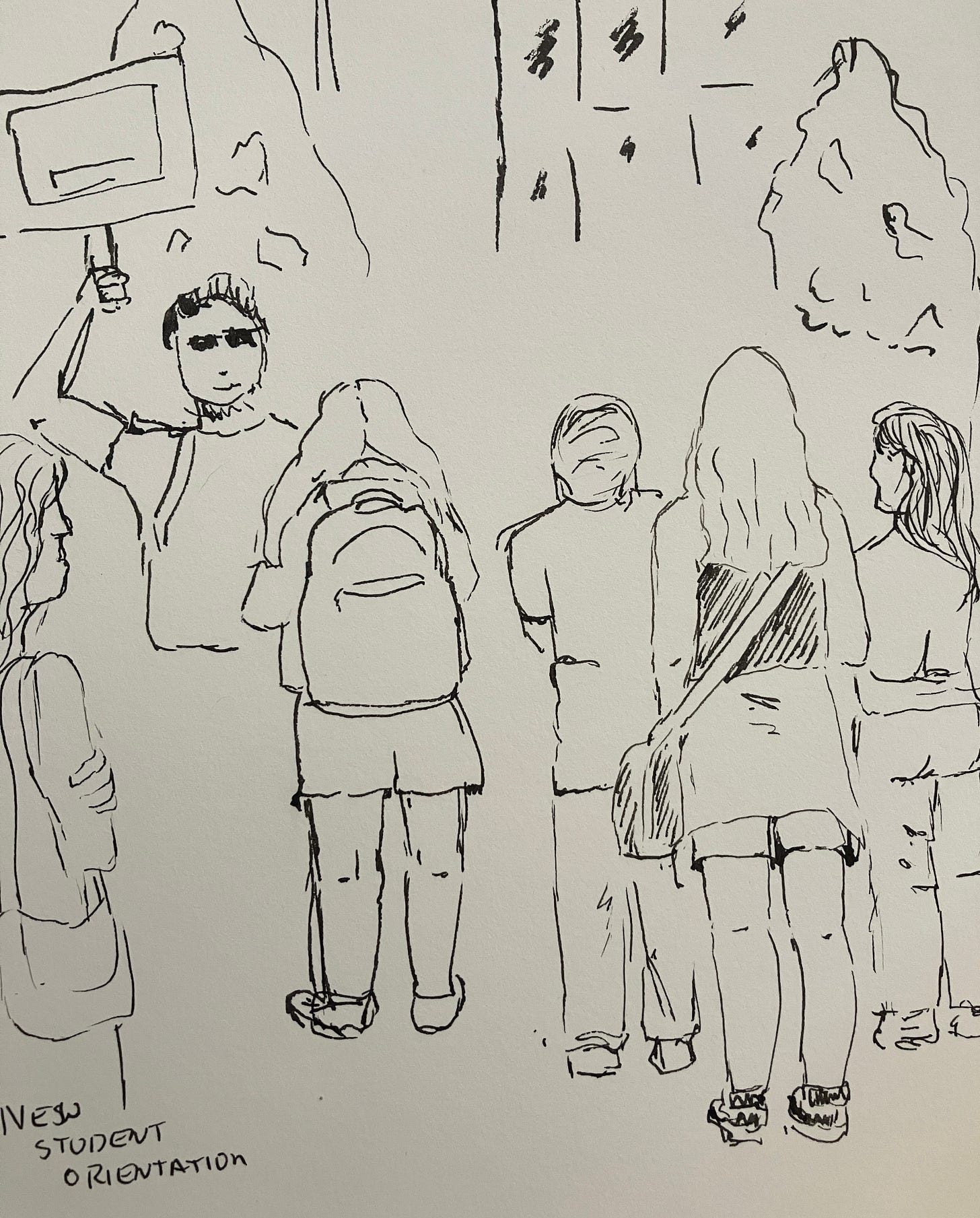 There they were lined up, one of many lines they would be standing in for the next four or five years, hoping they had made the right choice. Or positive that they had. So many will change majors, change directions, change their minds, change their hearts. They will grow so much in their brief time with us. They will make friends that will be friends for life. They will overcome challenges they felt were insurmountable. They will learn how to navigate a complex institution. They will exit that same institution with a new perspective on the world, with their focus broadened, ready (hopefully) to take on the world.